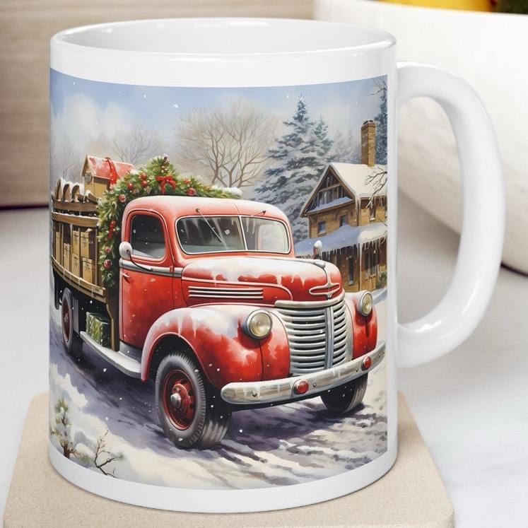This Christmas mug is the perfect addition to your holiday season. The retro red truck design adds a unique and nostalgic touch to the mug, making it a great conversation starter. The festive design is perfect for the holiday season, and the mug is sure to bring joy to anyone who receives it.