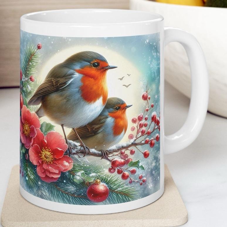 This Christmas season, add a touch of cuteness to your holiday cheer with our Robin cute Christmas mug. Featuring a charming robin design, this mug is perfect for those who love the holiday season and want to add a festive touch to their morning routine.