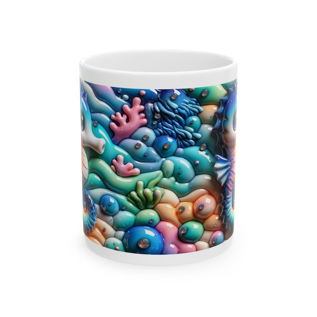 Seahorse serenity cute 3d mug - perfect for your morning drinks - drinkware, tumblers cup bottles washable reusable reuse ceramic coffee xma