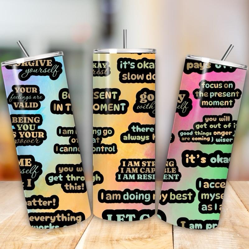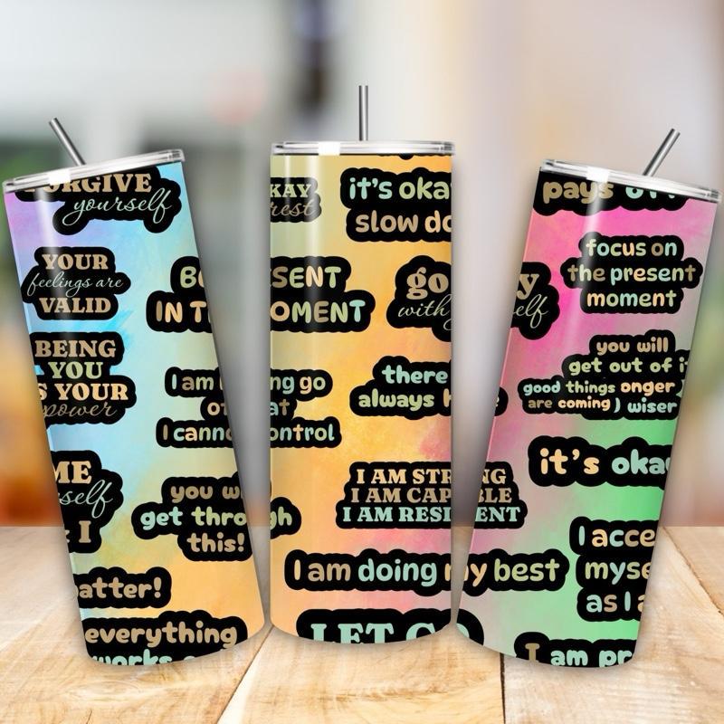 The self-love message on the tumbler is a great reminder to prioritize your mental health and well-being. It is a perfect gift for yourself or a loved one who needs a little extra encouragement to take care of themselves.