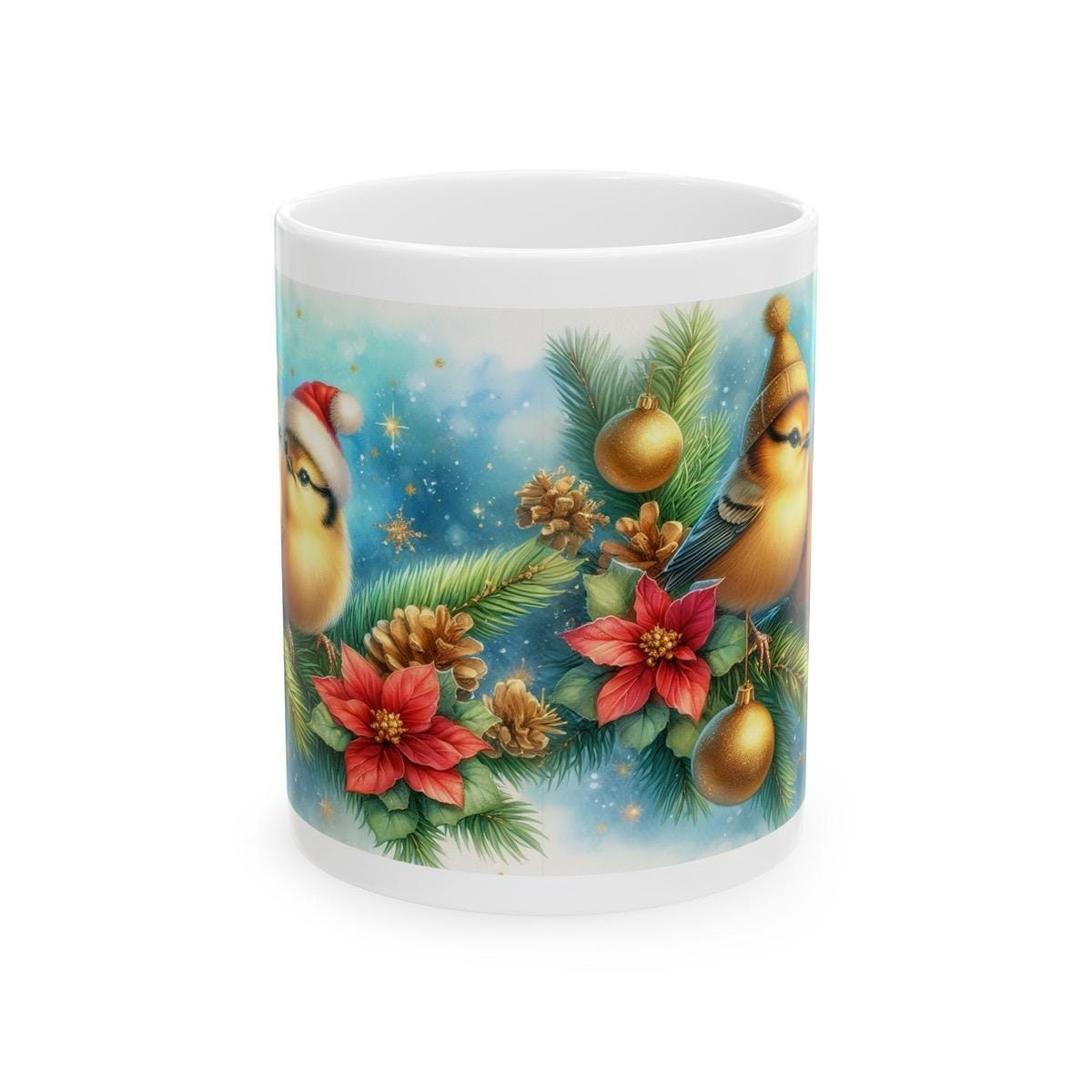 Songbirds christmas mug - perfect for hot beverages - drinkware, tumblers cup bottles reusable washable reuse ceramic xmas mugs tea festive