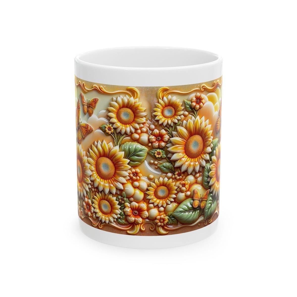 Introducing the Sunflower Autumn 3D Mug, a perfect addition to your morning routine. This mug features a beautiful sunflower design that adds a touch of nature to your day. The 3D effect of the design makes it stand out and adds depth to the mug, making it more visually appealing.