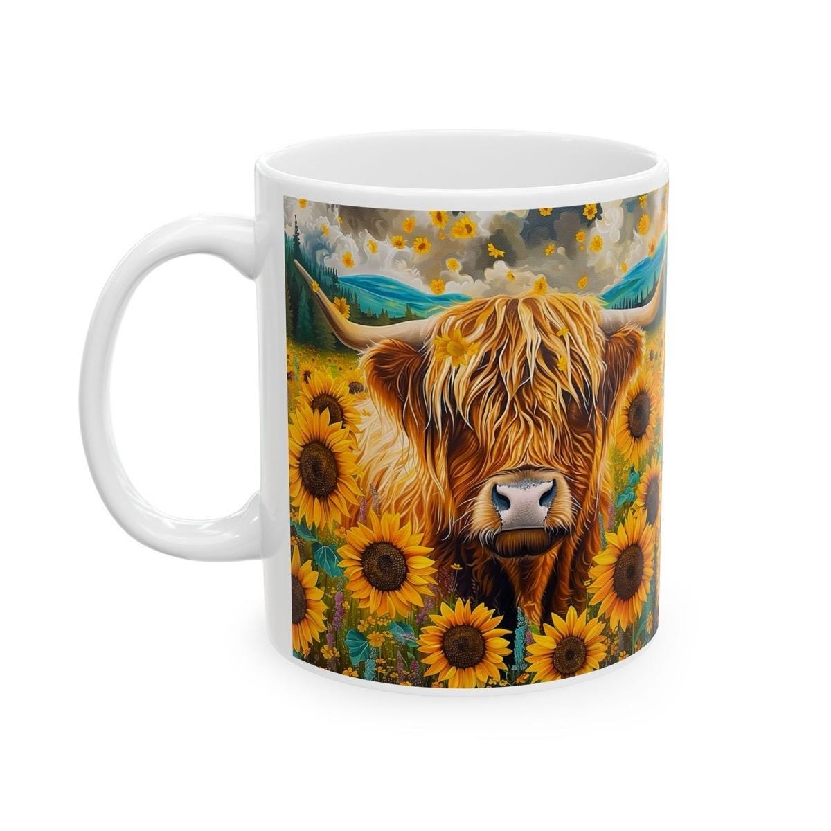 The Sunflower Highland Cow Funny Cute Mug is a great addition to any kitchen or office. It is perfect for coffee, tea, or any other hot or cold beverage. The mug is also a great conversation starter, and it can be used to display your love for nature and animals.