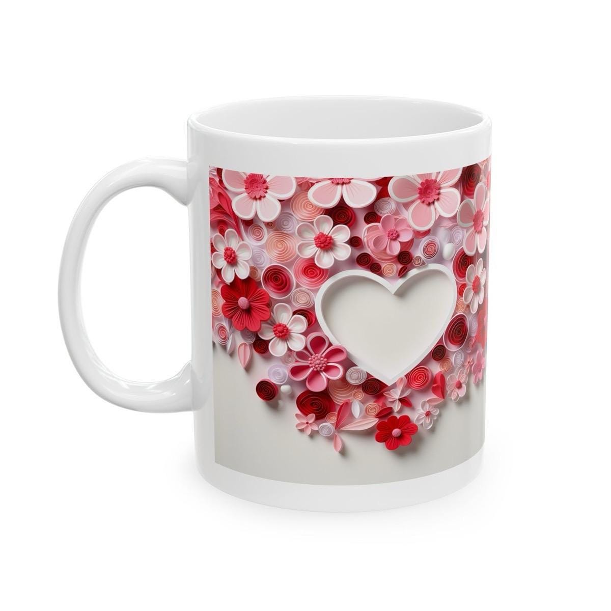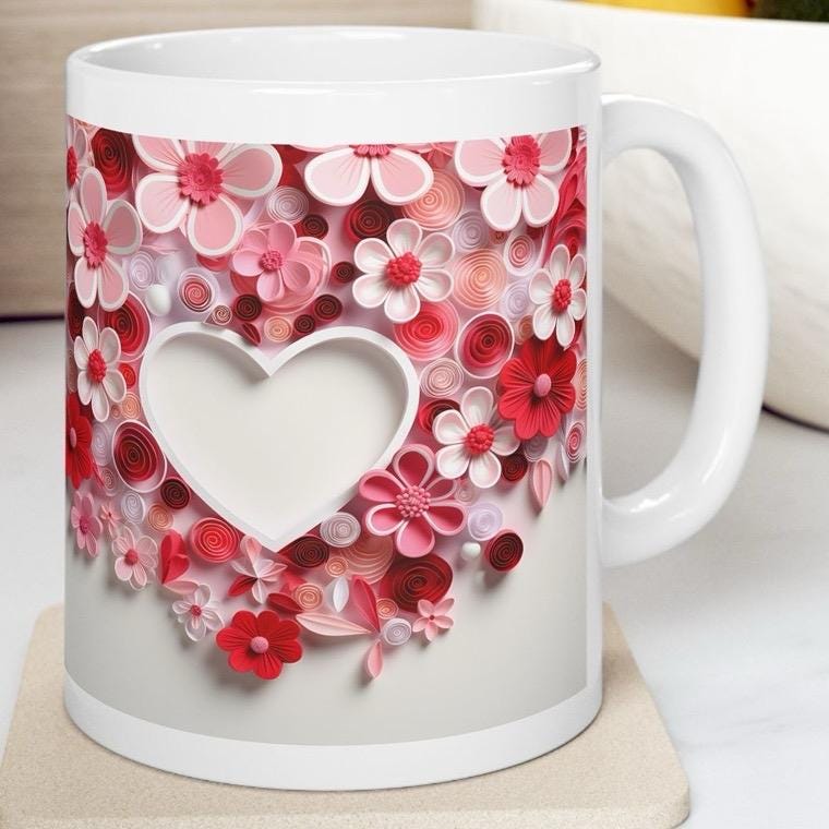 This white mug with red hearts and a floral design is a perfect addition to your drinkware collection. The 3D style of the design adds depth and dimension to the mug, making it more visually appealing. The mug is suitable for Christmas, Valentine's Day, and other special occasions.