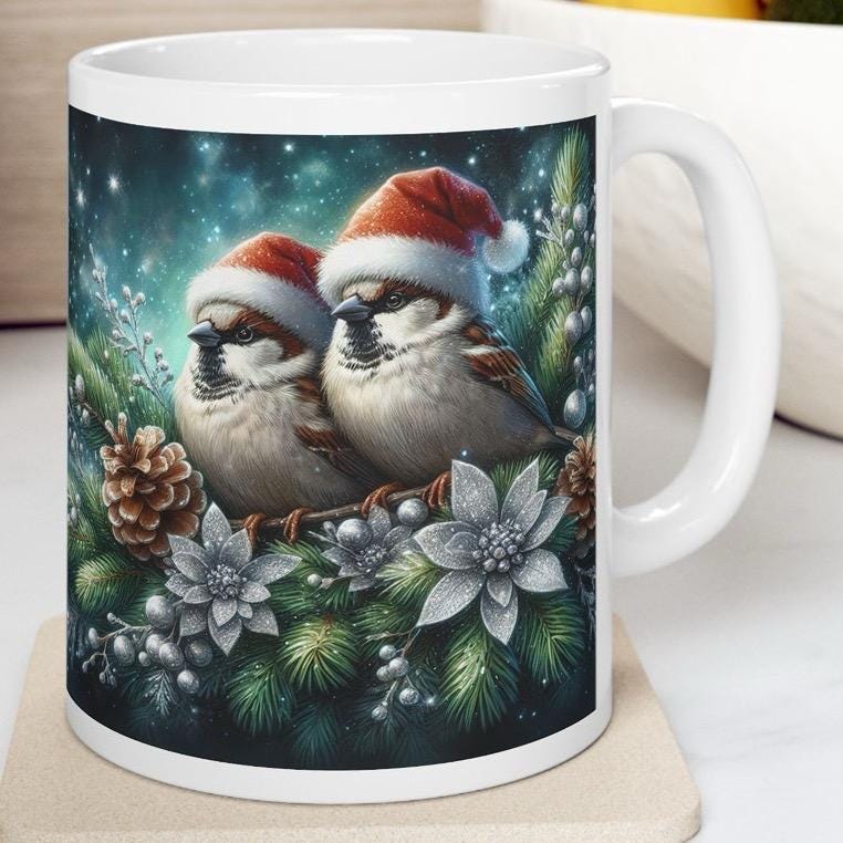 This Christmas mug is the perfect addition to your holiday season. Featuring a festive design of Christmas birds, it is sure to bring a smile to your face every time you use it. The mug is perfect for enjoying hot beverages such as coffee or tea during the winter season.