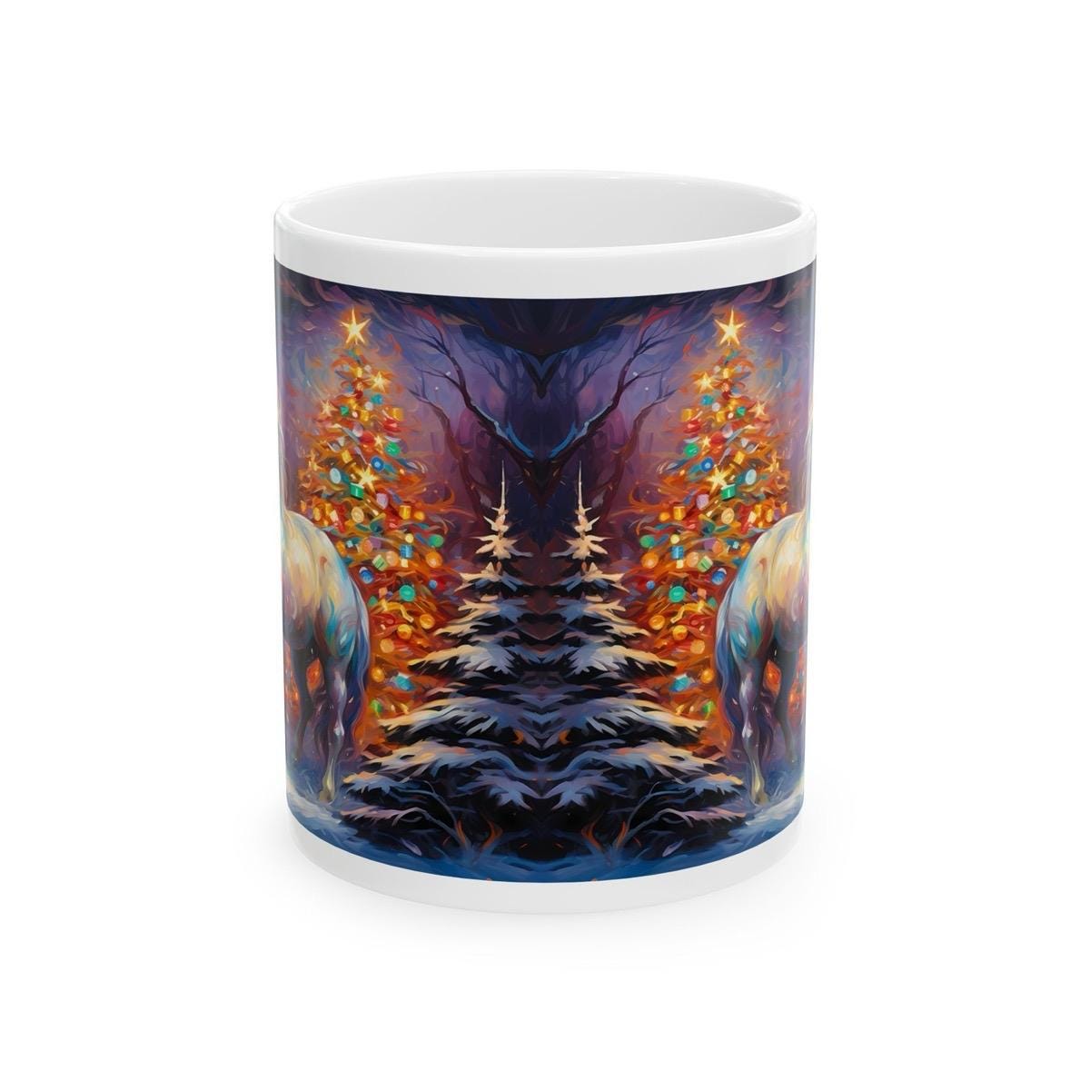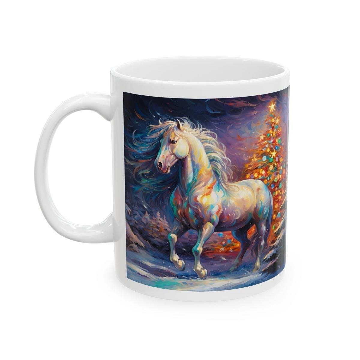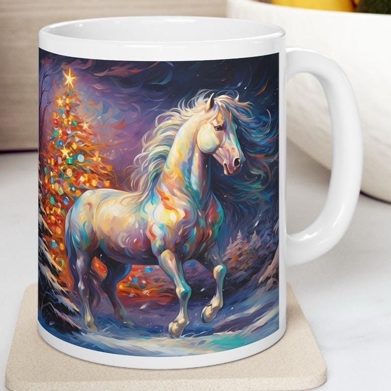 The mug is a great stocking filler gift, as it is a practical and useful item that can be used daily. The horse design adds a unique and playful touch to the mug, making it a fun addition to your holiday decor. Whether you're enjoying your morning coffee or tea, this mug is sure to bring a smile to your face.