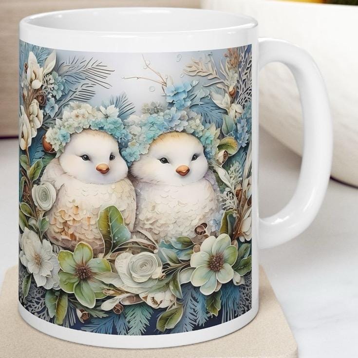 Winter songbirds mug - perfect christmas gift for secret santa or stocking filler drinkware tumbler washable reuse cup ceramic reusable coff
