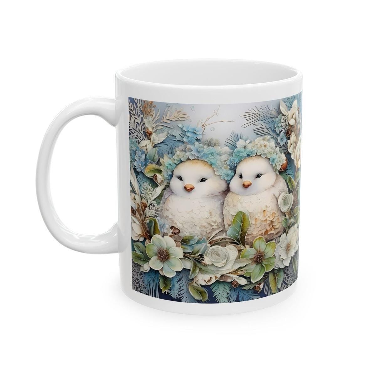The Winter Songbirds Mug is made of high-quality ceramic material, ensuring that it is durable and long-lasting. The mug is also easy to clean, making it a convenient addition to your kitchen.