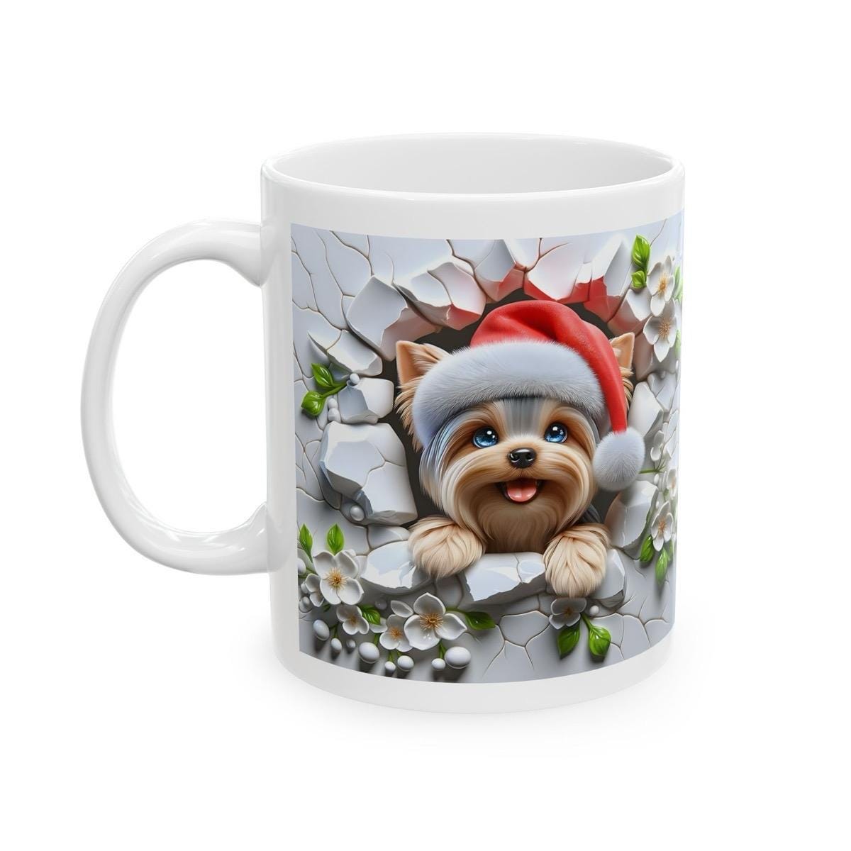 The Yorkie Yorkshire Terrier design on the mug is sure to bring a smile to your face every time you use it. The festive design is perfect for the holiday season, making it a great gift for dog lovers or anyone who enjoys a good cup of coffee or tea.